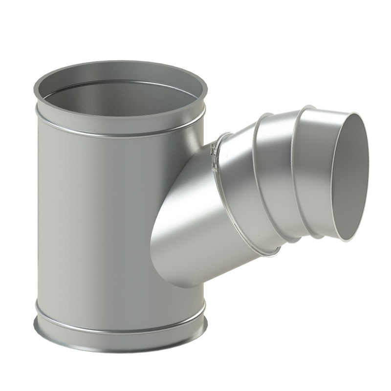 Soluzione indicata per Impianti di Aspirazione con tubazioni in depressione. Rappresenta la configurazione ideale per realizzare diramazioni ortogonali in quanto il profilo aerodinamico riduce le perdite di carico localizzate